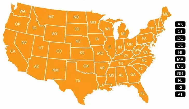 Click your state on the map below to receive free shipping.